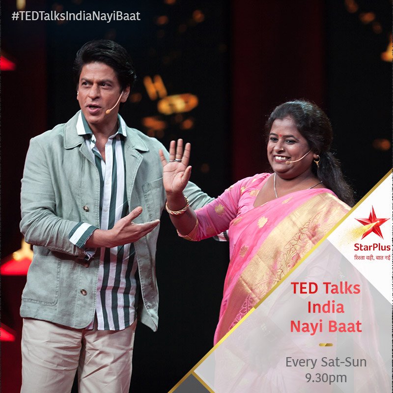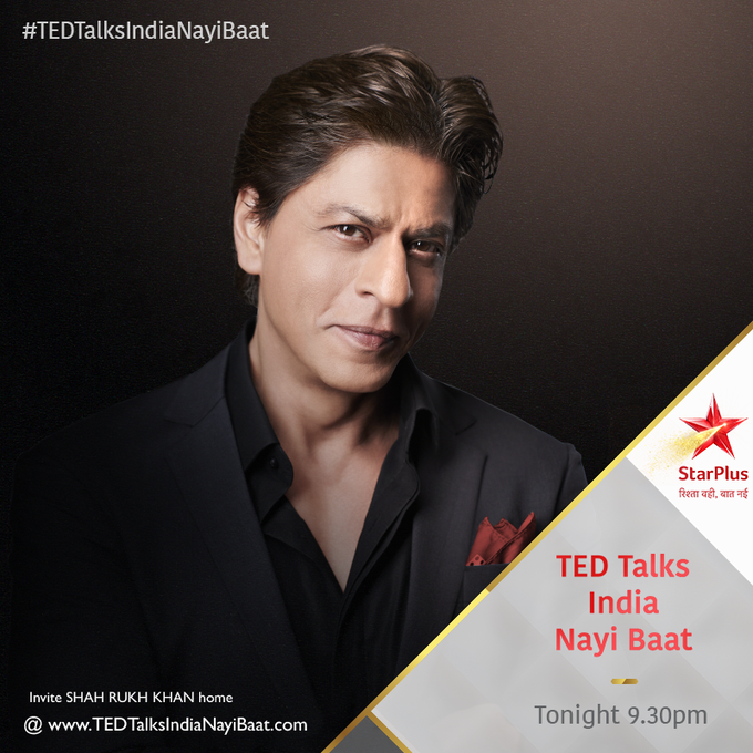 شاروخ خان في برنامج TED Talks India Nayi Baat TED Talks India Nayi Baat | VK Madhavan https://www.youtube.com/watch?v=n7lHOAYbBB8 + TED Talks India Nayi Baat | Nitish Bharti https://www.youtube.com/watch?v=rlgKsQ3Hv7g + TED Talks India Nayi Baat | Tahira Kashyap Khurrana https://www.youtube.com/watch?v=V9Os0waskuo |