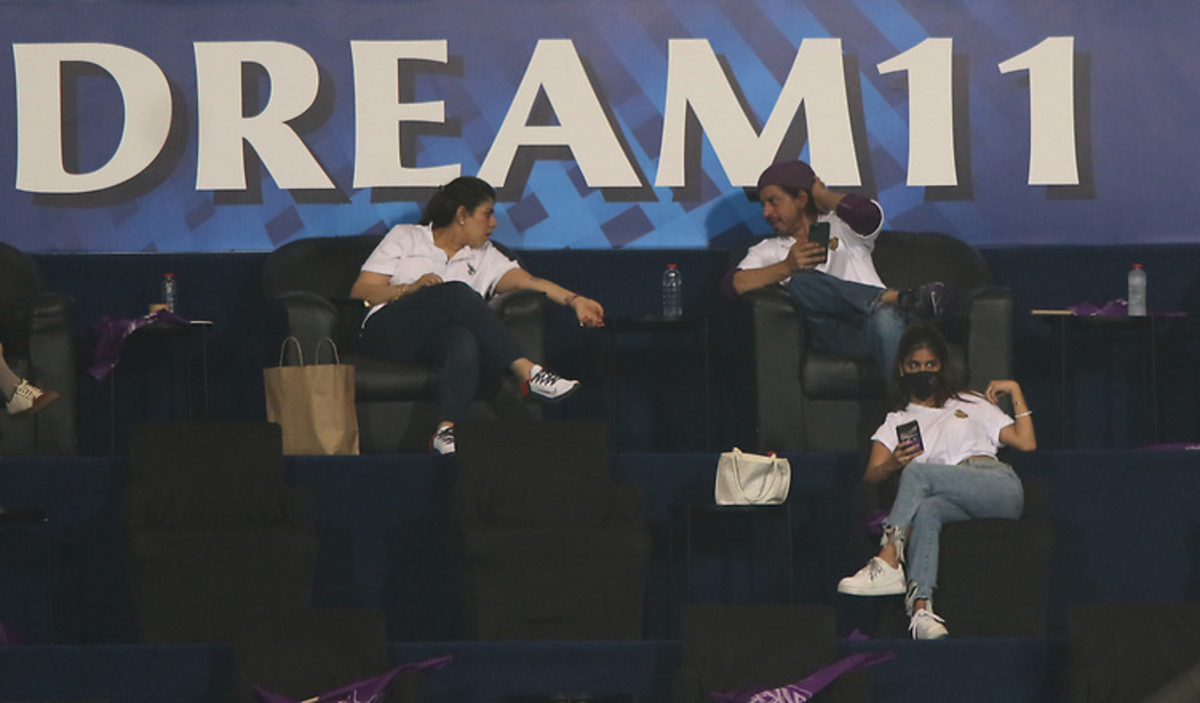 شاروخ خان و عائلته الان في مباراة KKR Vs CSK في ابوظبي