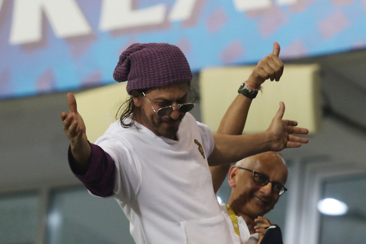 شاروخ خان في استاد الشارقه خلال حضوره مباراة RCB Vs KKR