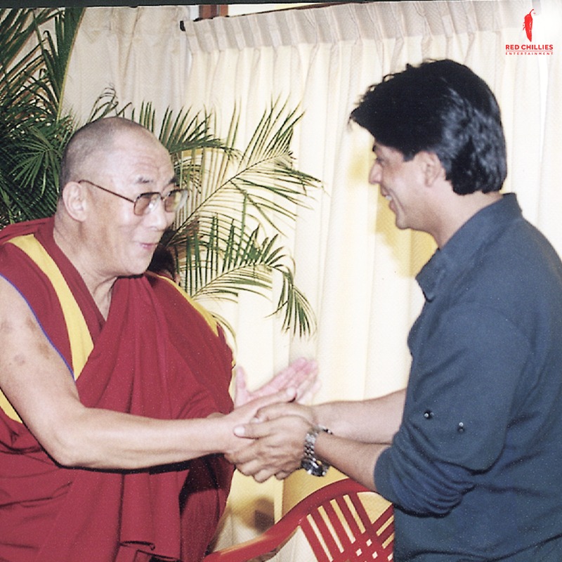 شاروخ خان مع الدالاي لاما الرابع عشر خلال العرض الخاص لفيلم Asoka عام 2001