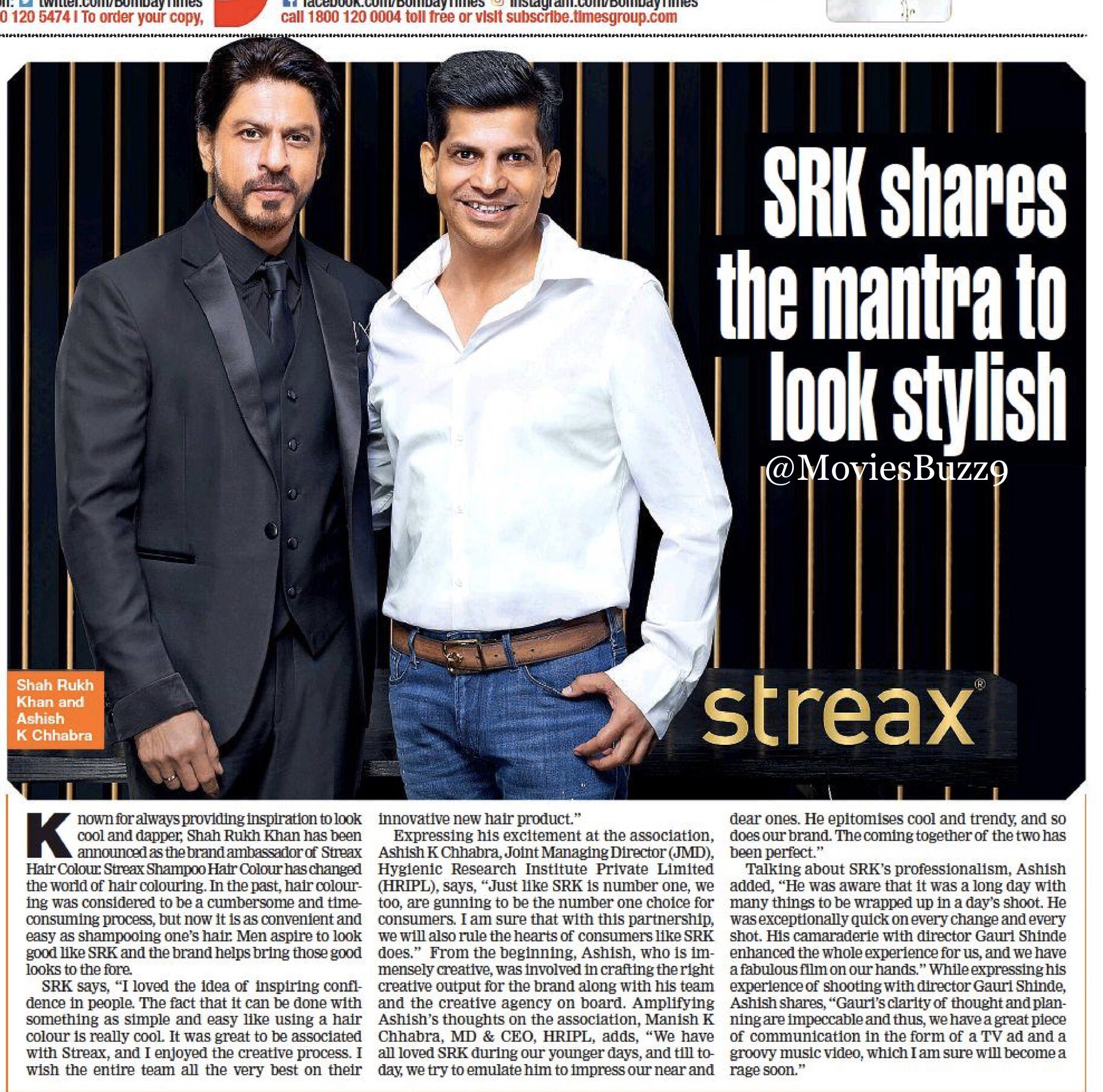 صحيفة BombayTimes : * شاروخ خان سفير للعلامة التجارية Streax * SRK shares a mantra to look stylish https://pbs.twimg.com/media/EyQfM2OV...jpg&name=large https://pbs.twimg.com/media/EyQfM2NV...jpg&name=large https://pbs.twimg.com/media/EyQ9LHmV...pg&name=medium https://pbs.twimg.com/media/EyRcT6fX...pg&name=medium |