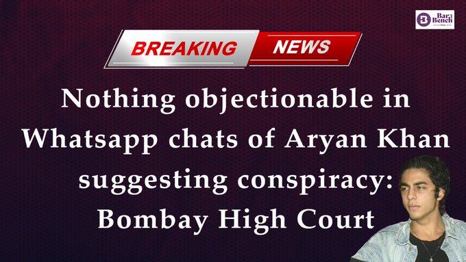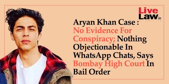 - قالت محكمة بومباي العليا في أمر الكفالة : لا دليل على التآمر ؛ لا يوجد شيء يمكن الاعتراض عليه في محادثات WhatsApp التي تشير إلى المؤامرة - للوهلة الأولى ، لا يوجد دليل مسجل لاستنتاج أن آريان و صديقه ارباز و مونمون ميرشانت قد تآمروا لارتكاب جرائم بموجب قانون المخدرات والمؤثرات العقلية https://pbs.twimg.com/media/FEofuc8X...jpg&name=small |