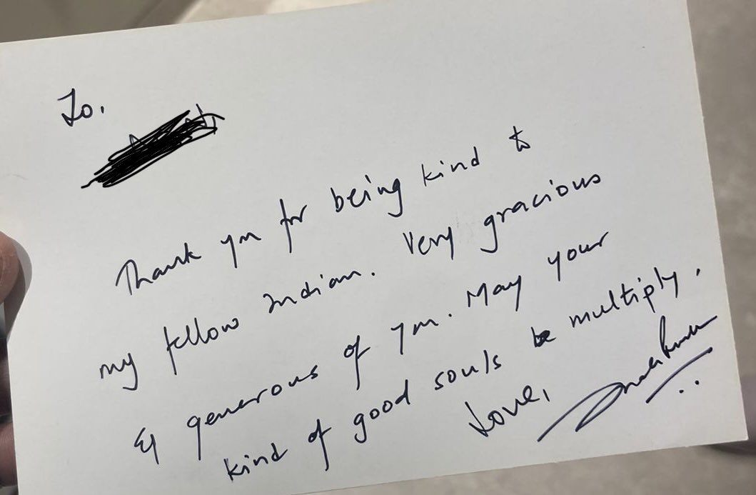 قبل شهر كتبت " اشويني ديشباندي " أستاذة الاقتصاد بجامعة أشوكا على التويتر عن موقف حدث لها مع وكيل سفريات في مصر خلال تواجدها في مصر : كتبت : " مطلوب مني تحويل الأموال إلى وكيل سفريات في مصر. كنت اواجه مشاكل في النقل. قال: " أنتِ من بلاد شاروخ خان . أنا أثق بك . سأقوم بالحجز ، وستدفعين لي لاحقًا. ، لن أفعل هذا لأي شخص من مكان آخر و لكن أي شيء من أجل شاروخ خان " و هو فعل ! شاروخان هو الملك وفي 10 يناير قابلت " اشويني " وزوجها الرجل المصري وكتبت : " أنا و زوجي وأخيراً قابلنا الرجل من هذه القصة اليوم! أخبرته عن كارثة تسونامي التي تسببت في ابتهاج جيد تولدت عن قصته. ريد تشيلز إنه سيكون سعيدًا بصورة لشاروخ خان موقعة باسم ابنته إن أمكن. من فضلك أرسل رسالة مباشرة لي إذا كان من الممكن ترتيب ذلك ، شكرًا! " https://pbs.twimg.com/media/FIwkgchX...g&name=360x360 وجاء الرد بالأمس من شاروخ خان وفريقه ق2 " نهاية سعيدة جدا لهذه القصة. وصلت اليوم ثلاث صور موقعة من شاروخ خان ، واحدة بها أجمل رسالة لوكيل الأسفار المصري ، و واحدة لابنته وواحدة لي. شكرًا بوجا دادلاني على تواصلك معنا وبالطبع للملك شاروخ خان على اللفته الكريمة " https://pbs.twimg.com/media/FJsxDYma...jpg&name=large https://pbs.twimg.com/media/FJsxDYpa...pg&name=medium https://pbs.twimg.com/media/FJsxDYta...jpg&name=large https://pbs.twimg.com/media/FJsxDYsa...jpg&name=large https://twitter.com/AshwDeshpande/st...34445018681344 ^ الشاه ق2ق1ق1ق1 |