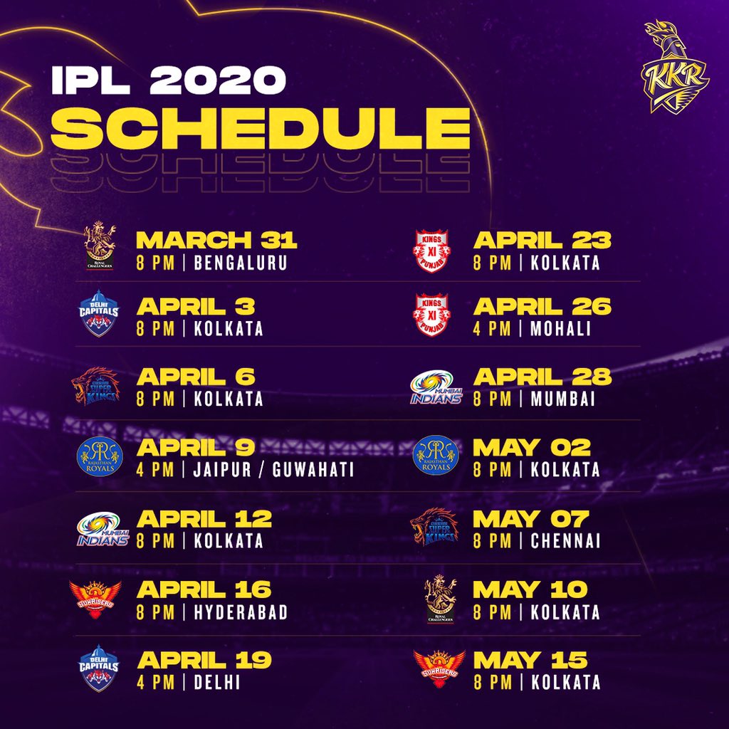 جدول مباريات فريق KKR في بطولة IPL 2020 https://pbs.twimg.com/media/EQ1WrJHU...pg&name=medium https://twitter.com/KKRiders/status/1228733597651066881 |
