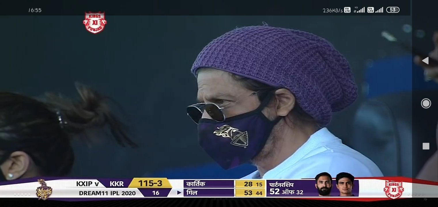 شاروخ خان الان في مباراة KXIP Vs KKR في ابوظبي
