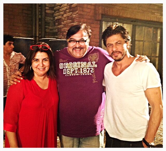 صوره لشاروخ خان مع فرح خان في موقع تصوير فيلم HNY عام 2014
