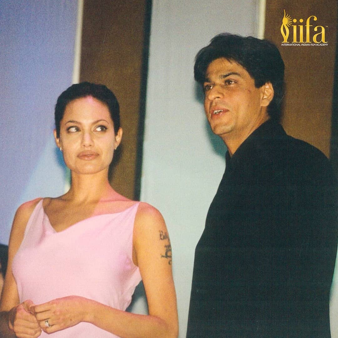 صوره لـ شاروخ خان و انجلينا جولي من حفل توزيع جوائز IIFA Awards عام 2000 في لندن