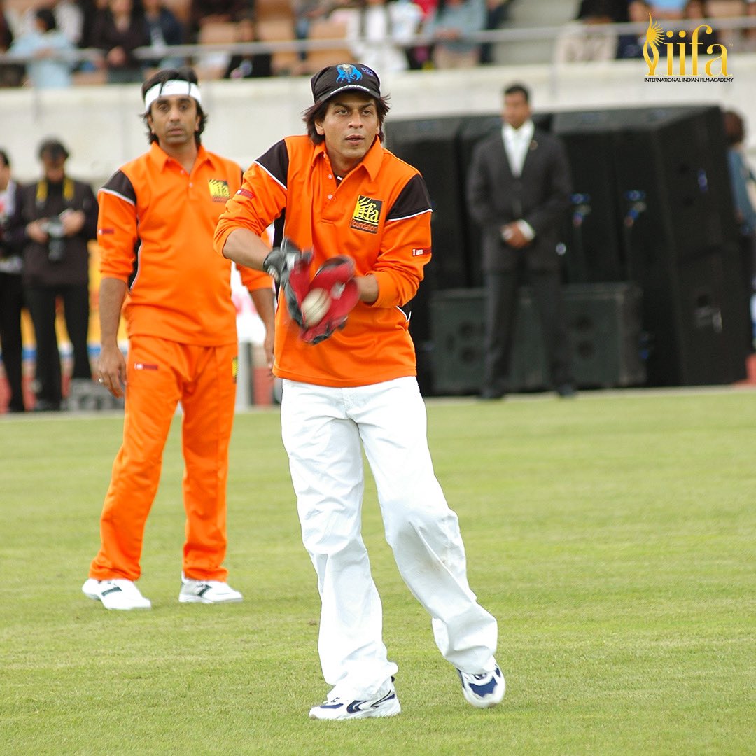 صور لـ شاروخ خان خلال مباراة كريكت في عطلة نهاية الاسبوع لحفل توزيع جوائز IIFA Awards عام 2005 في هولندا