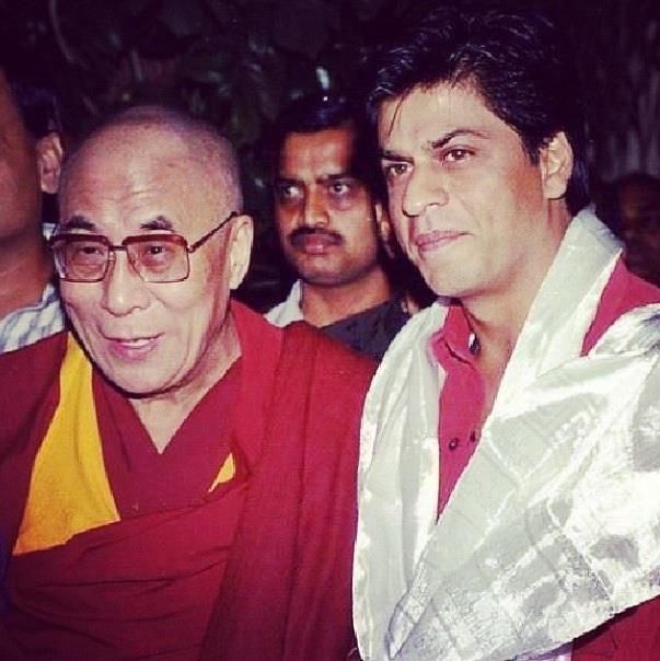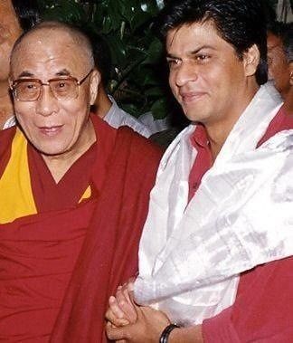 شاروخ خان مع الدالاي لاما الرابع عشر خلال العرض الخاص لفيلم Asoka عام 2001