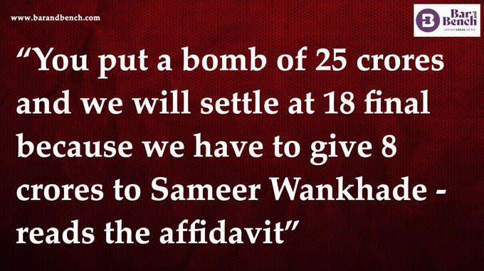وفقًا لشاهد NCB برابهاكار سيل ، طلب رئيس NCB سمير وانكيدي و كي بي جوسافي 18 كرور من شاروخ خان فيما يتعلق بقضية اريان خان و التي كانت 8 كرور منهم مخصصة لسمير وانكيدي نفسه !!