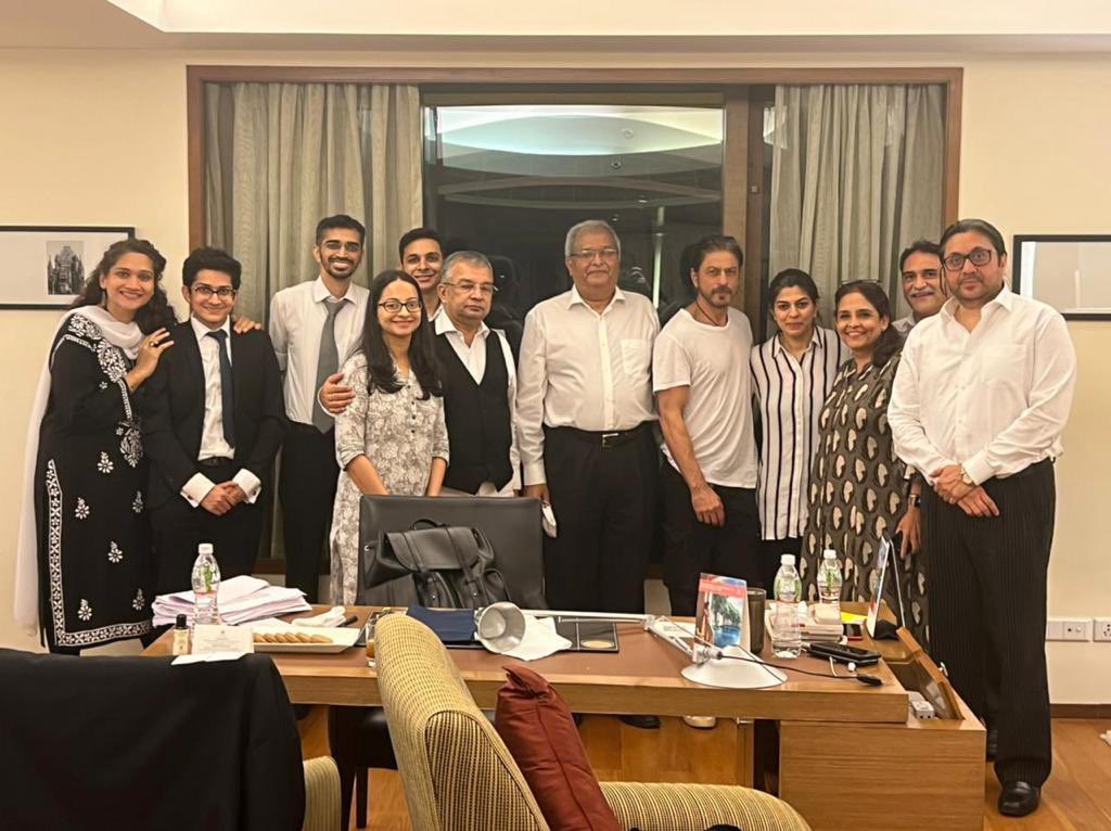 شاروخ خان الان مع المحامي ساتيش مانيشيندي وفريقه القانوني في فندق ترايدنت بعد حصول اريان خان على الكفالة من محكمة بومباي العليا