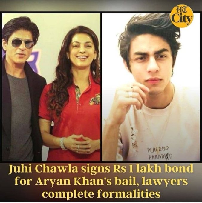 ساتيش مانشيندي ، محامي آريان خان : " تم تقديم الأمر إلى محكمة الجلسات الخاصة وقد قبلت المحكمة كفالة جوهي تشاولا . تجري الان الإجراءات النهائية للكفالة. بمجرد توقيع السندات ، سوف ينتقلون مباشرة من المحكمة إلى السجن " https://pbs.twimg.com/media/FC3TVV4U...png&name=small https://pbs.twimg.com/media/FC3TRG8V...jpg&name=small |