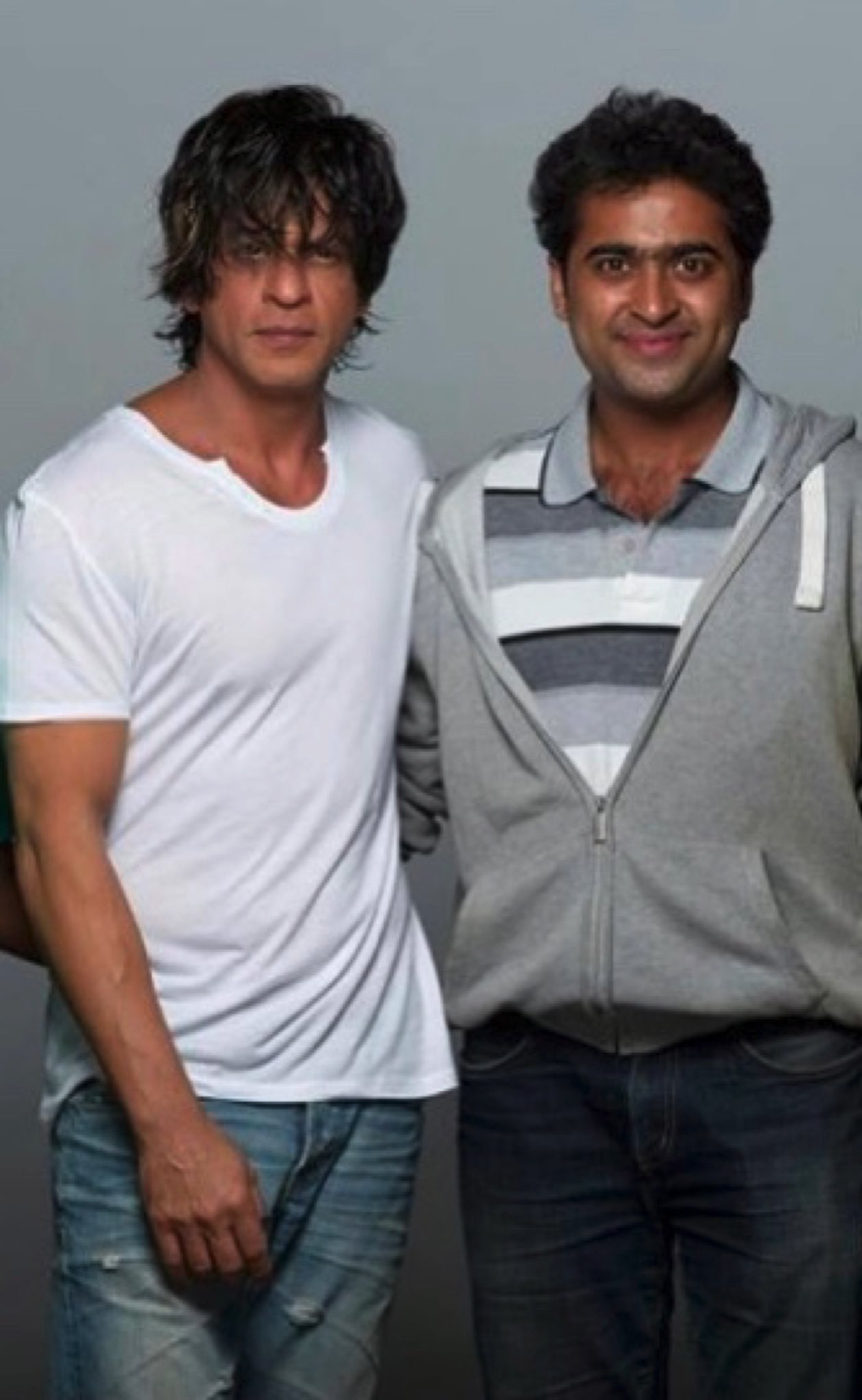 شاروخ خان مع مساعد المخرج " ايمي نادكارني " في كواليس احد جلسات التصوير عام 2014