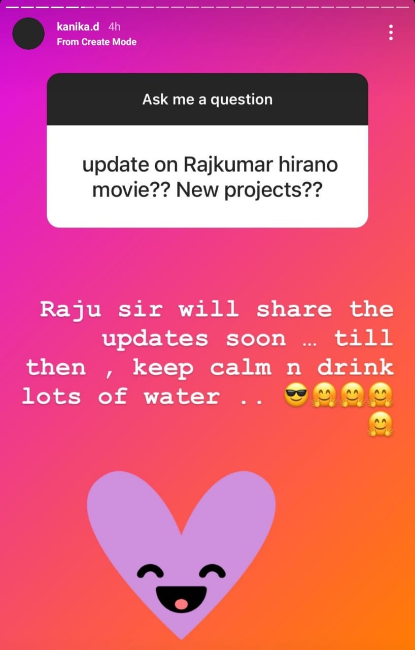 المؤلفة " كانيكا ديلون " عملت جلسة اسئلة على الانستقرام وتم طرح بعض الاسئلة عليها عن فيلم راجكومار القادممع شاروخ خان س : ماهي اخبار المشروع الجديد لراجكومار ؟ قالـت كانيكا : " راجكومار سوف يشارككم الاخبار قريبا .. لذا حتى ياتي ذلك الوقت .. احتفظوا بهدوئكم واشربوا الكثير من الماء " س : كلمة واحدة عن شاروخ خان ! كانيكا : الملك https://pbs.twimg.com/media/FDMkKmWU...jpg&name=large https://pbs.twimg.com/media/FDMkK78U...jpg&name=large |