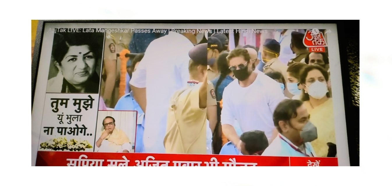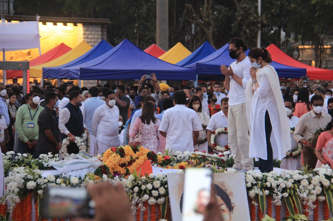 شاروخ خان اليوم في جنازة المغنية " لاتا مانغيشكار " في منطقة شيفاجي بارك