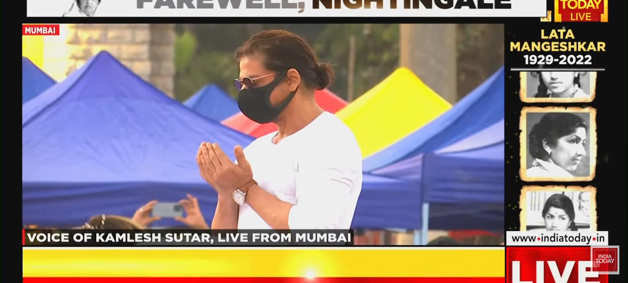 فيديو : شاروخ خان اليوم في جنازة المغنية " لاتا مانغيشكار " في منطقة شيفاجي بارك