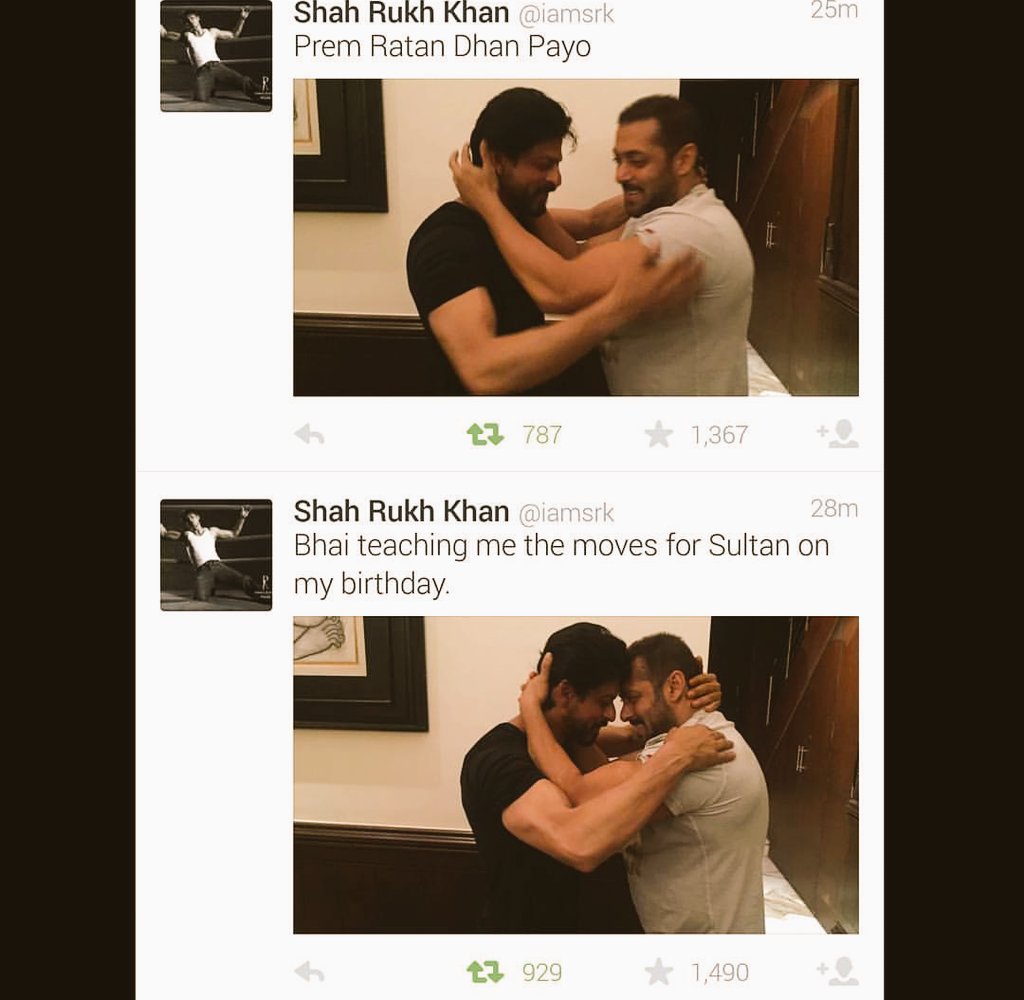 ![]() شاروخان في تويتر : أخي يعلمني بعض حركات فيلم سلطان في عيد ميلادي الصوره من بيت سلمان . |