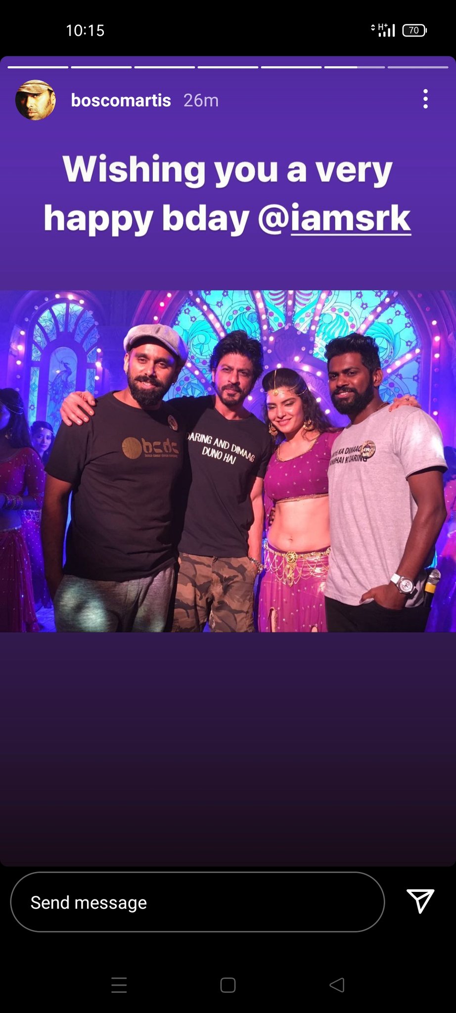 شاروخ خان مع مصمم الرقصات " بوسكو مارتيس " في موقع تصوير اغنية laila main laila من فيلم Raees