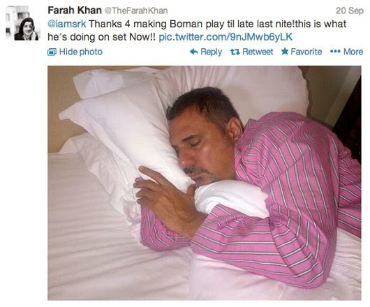 رد: بيت حبآيب شآروخآن - [52] Shahrukh khan  & 12 شيئا رهيبا حدث خلال تصوير فلم HNY http://4.bp.blogspot.com/-PmHsS11vbr...x0/s1600/1.jpg عصابة فلم HNY - فرح خان , شاروخان , ديبيكا باوكون , أبيهيشك باتشان , بومان إيراني , سونو سود - قد إختتموا جدول التصوير في دبي و عادوا إلى المدينة . من تغريداتهم و الإنستغرام الخاص بهم فقط , يظهر بوضوح أنها كانت واحدة من أفضل جداول التصوير التي حصلوا عليها . زعم بومان أنها أروع - تصوير خارجي - حصل عليه على الإطلاق , بينما أطلق عليها شاروخ - متعة - و قال أنهم أجمل مجموعة شاركها البطولة . لذا قمنا بعرض بعضا من الأحداث البارزة في رحلتهم , فقط في حال فاتك شئ منها ! 1. بومان إيراني ضاع في الطائرة . http://3.bp.blogspot.com/-sQQxc_M1OJ...os/s1600/2.jpg صديقي المتميز للغاية بومان هو ممثل راقي . لأول مرة أفقد شخص ما على متن الطائرة . ألا يستطيع أحد ما إيجاده !!! كيف !؟! 2. شاروخان يشاهد شروق الشمس http://4.bp.blogspot.com/-bNiPSRudHN...dU/s1600/3.jpg بمفردي ... في بعض الاحيان مجرد رؤية شروق الشمس على الشاطئ هي نعمة . فقط انت و الشمس لا شئ بينهما ... و لا حتى الاشعة . 3. بلغت حمى كرة القدم الذروة http://4.bp.blogspot.com/-m4yz3xJNTh...sc/s1600/4.jpg قابل الزومبيان شاروخ و بومان يلعبان الفيفا في كل لحظة مستيقظان فيها . http://3.bp.blogspot.com/-lGOS6CDr4F...Mo/s1600/5.jpg تعابير , محادثات كرة القدم . كم هي مجموعة جميلة من الممثلين المشاركين . خالية من المتاعب , سعيدة و تنافسية للغاية ! و هذا سيذهب ليكون HNY ! 4. محاولة بومان أن يبدو جيدا http://1.bp.blogspot.com/-DmsExglrMS...-w/s1600/6.jpg مخرجتي فرح خان تقول , هذا مشهد صعب . ينبغي عليك ان تحاول لتبدو جيدا . و لكن هذا فلم كوميدي فلا تتوتر ! http://3.bp.blogspot.com/-ltK3tpB3-D...eE/s1600/7.jpg بومان يمص خديه في حين ينبغي عليه أن يمص معدته !! http://4.bp.blogspot.com/-X6Gt8_85ak...FE/s1600/8.jpg شاه عضلاتك الستة لا يمكن مقارنتها بالعضلات العائلية التي لدى بومزي !! قم بهذه الوضعية اذا استطعت . 5. التصوير طوال ساعات الليل http://1.bp.blogspot.com/-n_dduSGnEC...2o/s1600/9.jpg الفتيان مع مخرجتهم الجميلة ... الاولى و الوحيدة فرح . التصوير الليلي قارب على الانتهاء . العودة الى ضياء الشمس . 6. فرح تتلقى هدايا ملونة شكرا سيد سموث من أجل الهدية الجميلة ... قدماي سوف تشعر الآن بألم أقل . 7. محافظة سونو سود على نظام التمارين البدنية في القمة http://2.bp.blogspot.com/-z7f--1JF3g...c/s1600/11.jpg بغض النظر عن مدى التعب . على المطحنة أن تعمل ... http://3.bp.blogspot.com/-Fi-vYpR5Cr...A/s1600/12.jpg أغلقت الصالة الرياضية بحلول الوقت الذي وصلت فيه إلى الفندق و لكن ينبغي أن أقوم على الأقل بـ 500 مرة بوش آب و 200 مرة كرانش قبل أن أنام . تبقى 250 مرة قبل أن أذهب ... هيا . 8. عقد مؤتمر صحفي في الشرق الأوسط بالملابس التقليدية http://2.bp.blogspot.com/--s2mxIS5-T...g/s1600/13.jpg المؤتمر الصحفي لفلم HNY في دبي . شكرا لك دبي !!! http://1.bp.blogspot.com/-4ZOADadSW_...Y/s1600/14.jpg و صورة أخرى ! 9. قيام إبيهيشك بإنزال المناظر في الإستجرام http://3.bp.blogspot.com/-gXY_6wJoAh...s/s1600/15.jpg http://4.bp.blogspot.com/-tTXX9TdwGJ...c/s1600/16.jpg http://4.bp.blogspot.com/-XfxkrHy_Bh...g/s1600/17.jpg 10. تصوير جاكي شروف مشاهده http://3.bp.blogspot.com/-Ntmd4L-RQl...0/s1600/18.jpg الفذة جاكي شروف Jaggu da اليوم في موقع التصوير ... في إنتظار حرارة دبي أن تجعل لغته أكثر إثارة ! http://3.bp.blogspot.com/-locz6vgh24...I/s1600/19.jpg كم هو جميل تواجد King uncle و Chunni babu في موقع التصوير . جاكي هو حقا روكستار ... شكرا لكونك جزءا من فلم HNY . 11. قيام فرح خان بالتسوق كثيرا يوم العطلة كان أكثر إرهاقا من يوم التصوير ! شكرا لمراكز تسوق دبي الجيدة لإعطائي عربة من أجل التسوق ! 12. ينام الجميع عندما يكون من المفترض أن يقوموا بالتصوير شكرا لجعلكم بومان يلعب حتى ساعة متأخرة الليلة الماضية ! هذا ما يفعله الآن في موقع التصوير !! فرح لقد كان من المفترض أن أنام خلال التصوير , بينما من المفترض أن تكوني مستيقظة في هذه . أخبريني الآن ؟ إذا كنت تشارك في الإعتقاد بأن الفلم الجيد يصنع عندما يكون جميع من في موقع التصوير مستمتعا , إذاً أعتقد أنه يمكننا أن نتوقع أن فلم HNY سيكون رائعا . المصدر , , , , فلم القادم HNY يحتوي على أغنية رومانسية التي يمتاز بها شاروخان http://3.bp.blogspot.com/-En7FJ_NF0n...rahan-khan.jp