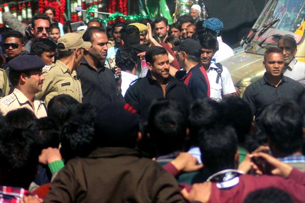 معجب " انا معجب كبير بسلمان خان وقد اتيت على طول الطريق من سريناجار لأخذ لمحه من نجمى المفضل " " لا استطع ان اصدق ان سلمان خان هنا امامى . انه حلم يتحقق " - معجب السكان المحليين فى كشمير كانوا متحمسين تماما بوصوله على الرغم من الاجراءات الامنيه المشدده وصلت الى اعداد وحشود ضخمه حيث بقى سلمان خان يلوح لهم . ![]()