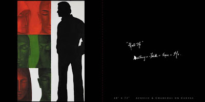 في هاللوحة احس القصد انه يشوف (من وقفته ونظرته للناس وتظليله لصورته يعني التركيز على نظرته مو عليه)