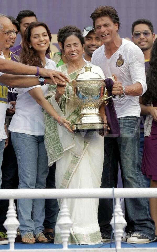 تكريم فريق KKR : شاروخان يضيء عدن بالقبلات و الرقص  وسط وابل من قصاصات الورق الوردية و هدير يصم الاذان , أشاد النجم شاروخان يوم الثلاثاء بالحب الهائل و الدعم من المشجعين في المدينة لفريق كولكتا نايت رايدرز حيث قام بالاحتفال و رمي القبلات خلال حفل التكريم الكبير في حدائق عدن . الفريق المضيف , المحاط من قبل مالكيه شاروخان و جوهي تشاولا , عرضوا الكأس الذهبية لبطولة الكريكيت على اكثر من 50,000 الف من هواة الرياضة في الساحة التاريخية , في حين بلغ عدد الناس في الخارج الذين لم يكونوا قادرين على دخول الاستاد حوالي 150 الف . اصبحت الحشود وحشية حيث قام الملك خان , بإرتداء قبعة , فجر القبلات , لَوَح و قام ببعض حركات اغنيته الشعبة - رقصة اللونجي - فوق منصة مرتفعة . مشت جوهي تشاولا المندفعة مع اللاعبين حيث كان نشيد فريق KKR يغنى في الخلفية من قبل المغنية أوشا . قال ملك بوليود , الذي وصل متأخرا ما يقارب 3 ساعات بسبب خلل فني في طائرته بعد ان قوبل بالتصفيق الهائل من الحشود العاشقة لدى وصوله: لا اعتقد ان اي دولة اخرى او اي بلد اخر في العالم لديه هذا النوع من الدعم و الحب لابطال الرياضة . لذا شكرا لكولكتا من اجل دعمنا في السراء و الضراء . سوف نستمر في العمل الجاد . و نحن نستمتع بتصفيقكم بالاضافة الى عتابكم . قال النجم بأسلوبه الذي لا يضاهي , متلاعبا في حواره الشهير من فلم Don : فقط انصار KKR يمكنهم ان يقبضوا على دون بعيد المنال . رئيسة وزراء ولاية البنغال الغربية ماماتا بانيرجي , تقريبا قامت بإدارة العرض , حضنت و هنأت شاروخان على أداء الفريق الممتاز . و قد قالت : شكرا لك على الفوز الرائع . فأجاب شاروخان بعد ان قام بلمس قدمي بانيرجي و زرع قبلة على يديها : نحن من نشكر السيدة ماماتا لكونها كريمة دائما معنا . انت من جعلتنا نشعر كما انه منزلنا . شاروخان المرتدي بأناقة قميص KKR الابيض , قام بقطع كعكة عملاقة - صيغت على شاكلة استاد حدائق عدن - برفقة جوهي تشاولا , كابتن الفريق جوتام جامبير و ماماتا بانيرجي . نجوم من صناعة السينما البنغالية , منهم الممثلين بروسينجيت و سوهام , الممثلات سرابونتي و جون مالياه , زادوا البهجة حتى مع وجود شاروخان في الصدارة . المطربان أوشا و انيك دهار قاما بالغناء و الرقص , و انضمت الحشود اليهما . فرقة البول و الراقصين جعلت الاجواء محمومة , صافح البادشاه الفنانين الشعبيين و قدم لهم انحناءة . تم عرض اغاني من افلامه مثل Don 2 و Chennai express , و قد قام شاروخان بالرقص على اغنية 1234 من فلم Chennai express حيث انضمت نجمة البنغال جون مالياه الى الاداء المرتجل . الفديو 1 2 3 4 ’ ’ ’ ’ افضل 5 لحظات لشاروخان في بطولة كريكيت 2014 1. إهداء شاروخان فوز KKR لإبنه إبرام  يبدو ان سيدة الحظ قد ابتسمت لشاروخان حيث ان فريقه كولكتا نايت رايدرز فاز ببطولة الدوري الهندي الممتاز مرتين خلال ثلاث سنوات . في نهائيات الموسم السابع لبطولة الكيريكت , كان شاروخان يقوم بتحريض فريقه ضد فريق النجمة بريتي زينتا KXIP . قبل المباراة النهائية الحاسمة , قام الممثل بنشر صورة قميص KKR الخاص بإبنه ابرام على موقع المدونات الصغيرة التويتر . نقلت الصحيفة عن الممثل قوله : أهدي هذا الفوز الى طفلي الصغير إبرام و العمل الشاق الذي قام به جوتام و فريقه . شكرا بانغالور و شكرا للدوري الهندي الممتاز IPL . نحن نؤمن بأنفسنا و بالعمل الشاق الذي قام به ادارة الفريق . 2. لحظات توتر شاروخان  كان ضغط المباراة النهائية بين فريقه و فريق KXIP واضحا على وجه شاروخان . فعلى الرغم من ان فريق ملك بوليود كان يحاول الفوز بالبطولة للمرة الثانية , الا اننا شهدنا العديد من اللحظات التي بدا فيها النجم عصبيا . و كما هو الحال دائما واصل التعلق بتميمة حظه , ابنته سوهانا في الملعب . في حين ان زوجته و ابنه لم يكونا موجودان في الملعب لدعمه , شوهدت ابنته تستمتع بكل جزء من المباراة مع والدها النجم . ففي كل مرة اي لاعب من فريق KKR يسدد أربعة نقاط او ستة , يحتضن شاروخان ابنته بابتهاج . و بمجرد ان تم الاعلان عن KKR ابطالا للدوري الهند