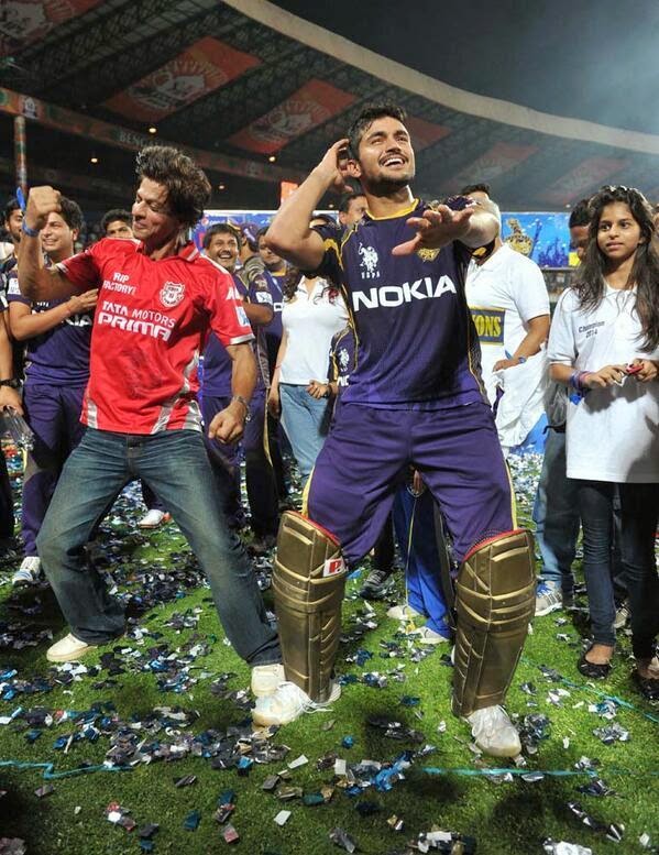 شاروخان : كنت اعلم ان مانيش باندي سيقوم بتتويج KKR  كان شاروخان محور الاهتمام بعد فوز فريق كولكتا نايت رايدز بكأس بطولة الكيريكت للمرة الثانية خلال ثلاث سنوات في استاد تشيناسوامي في بانغالور يوم الاحد . كان مانيش باندي المسؤول عن فوز كولكتا مع 50 كرة حصدت 94 نقطة . ساعدت الجولات فريق KKR على اللحاق بنتيجة فريق KXIP التي بلغت 4\199 . و قد فاز باندي بجائزة رجل المباراة لجهوده الرائعة . و قد كان شاروخ نجم بوليود منتشيا بعد فوز يوم الاحد . عندما تمكن فريق KKR من الوصول الى النهائي في كولكتا الاسبوع الماضي , صبغ شاروخان حدائق عدن بالاحمر مع الشقلبات و القبلات الطائرة . و بعد الفوز بالنهائي الذي سلب العقول , قام شاروخان بالاشادة بالشاب باندي . قال شاروخان : اخبرت عائلتي في الصباح ان مانيش باندي سيفوز بهذه المباراة من اجلي . كانت الـ 94 نقطة التي حصدها باندي ثاني اعلى نتيجة من قبل ضارب كولكتا في البطولة , حيث النتيجة الاعلى كانت من قبل بريندون مكولوم الذي حصد 158 نقطة عندما واجه فريق RCBفي استاد تشيناسوامي في بانغالور 18 ابريل عام 2008 . كانت هذه 10 مرة يضرب فيها باني 50 كرة بغض اللنظر عن الـ 100 . كان اجمالي فريق كولكتا 7\200 النتيجة الاعلى في تاريخ بطولة الدوري الهندي الممتاز IPL . قال خان : هذه لابد ان تكون فوزا . القران كان في جيبي و كان علينا ان نفوز بها . نسب شاروخان الفضل كله في الفوز بالبطولة للفريق . قال شاروخ مبتهجا : انا لا العب اللعبة و لا اعرف شئيا عنها , هم من قاموا بالعمل الشاق . هم اليرقات التي تقوم بكل العمل الشاق , و انا الفراشة التي تحظى بالشهرة . سوف يكون ملك بوليوود محور الاهتمام مرة اخرى يوم الثلاثاء عندما يحتفل فريق كولكتا نايت رايدرز بالفوز بالبطولة في حدائق عدن . الى جانب رئيسة وزراء ولاية البنغال الغربية ماماتا بانيرجي , سوف يكون العرض عرض شاروخان بالتأكيد . المصدر ’ ’ ’ ’ شاروخان : كنت أعلم ان مانيش سوف يفوز بها من اجلي  انت لا تحتاج الى تعليم شاروخان كيفية الاحتفال . فقط منذ بضعة ايام , جعل حشود حدائق عدن ينفجرون من الاثارة عندما قام بالشقلبة مع عدد من المصورين , بعد ان أخذ فريقه موضعا في نهائيات بطولة الكريكيت عام 2014 . بصرف النظر عن الشقلبة , مساء يوم الاحد , لم يدخر شاروخان جهدا في الاحتفال حيث فاز فريقه بالبطولة للمرة الثانية . رقص مع لاعبينه , تشارك التهنئة بالمصافحة و العناق مع كل عضو من فريقه الذين كانوا جميعا يتمرغون بالاحتفالات تحت امطار من الورق الملون . لقد تكرر ما حدث عام 2012 مرة اخرى حيث ان استاد تشيناسوامي يشبه تقريبا منزل الفرسان - حدائق عدن . و يمكن للمرء ان يكون على يقين , ان العديد من مشجعين KKR في كولكتا كانوا منتشين و سعيدين للغاية بنفس قدر سعادة محبوبهم بعد الانجاز الرائع للفريق . تلك الابتسامة التي على وجه شاروخان لا يبدو انها ستتلاشى . و حتى عندما كان على سطح القمر بعد فوز فريقه , كان شاروخان المتحمس للغاية اكثر استعدادا للتعبير عن مشاعره في دردشة سريعة مع IPLT20.com . * مقتطفات من حديثه * * انتصارين في غضون ثلاث سنوات - لا يمكن ان يحدث افضل من هذا , اليس كذلك ؟ (يبتسم) لا يمكن ان يحدث افضل من هذا . انا سعيد للغاية من اجل الفريق و كولكتا . اتعلم , عندما كان الفريق يتشكل , قام الناس بإعطاء الكثير من الملاحظات عما هو صواب و عما هو خطأ . و لكنني اود ان اقول ان لدينا فريق مدهش مع عقل رائع جدا على اكتافهم . لذا بارك الله في جوتام جامبير و الفتيان الذين قد حققوه لي , ابني آريان , ابنتي سوهانا و الصغير إبرام فخورين للغاية . و هذا الفوز اهديه الى إبرام . * قد اصبحت عادة لفريق KKR ملاحقة مجاميع ضخمة في النهائيات ؟ قم بصنع المجاميع بالقدر الذي ترغب به , و نحن سنأتي و نتغلب عليه (يضحك ضحكة خافتة) * المباراة النهائية عام 2012 و الان هذه , كلاهما كان مثيرا . هل كنت متوترا عندما شاهدتهم يلعبون الليلة ؟ لا . أغضب جدا , لكنني لا أتوتر على الاطلاق اثناء مشاهدة المباراة . و هذه لابد ان تكون فوزا . القران كان في جيبي و كان علينا ان 