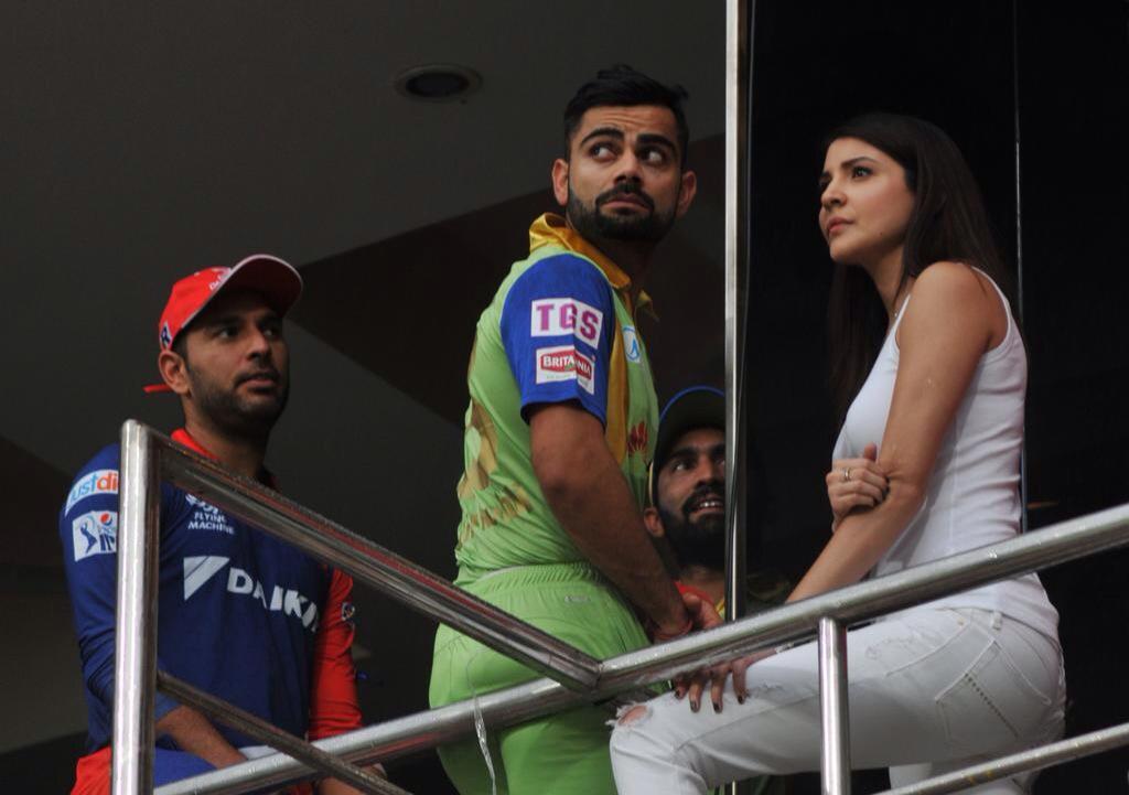 Anushka Sharma and Virat kohli during #RCBvsDD Match