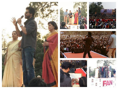 حفل إطلاق أغنية فلم Fan الترويجية 8 أشياء كشف عنها شاروخان خلال إطلاق أغنية Fan  فلم FAn هو من معجب إلى معجب من قبل معجب ! هذه ليست تأتأة من قبل أشخاص , إنها أغنية العام Jabra التي صنعت من قبل ملك الرومانسية - شاروخان . كان شاروخان متواجد في مسقط رأسه دلهي لزيارة كليته هانسراج و لإستضافة أول مؤتمر صحفي لـ Fan , فلم المخرج مانيش شارما . قام بإصدار أول أغنية من ما يطلق عليه " الفلم المميز للغاية " في حياته و هي " لقد أصبحت من أشد المعجبين " ! و عندما يكون شاروخان في موضع حماسي , فأنت تضمن المتعة ! و ها هنا بعضا من الأشياء التي كشفها النجم خلال إطلاق أغنية Fan 1. الآن هو خريج ! لقد تسلم شاروخان شهادة تخرجه من كلية هانسراج عندما ذهب هناك للترويج لفلمه القادم مع شركة ياش راج Fan , و حصل معها على درجة البكالوريوس التي لم يكلف نفسه عناء أخذها من الكلية ! قال خان : لقد تخرجت رسميا الآن , لقد أصبحت مثقفا . أما مانيش لم يتخرج بعد , لا أعلم فيما إذا كان قد نجح أم لا . 2. قاعة سينما PVR بريا بالجلوس في قاعة سينما PVR بريا في دلهي , شارك خان ذكرياته قائلا : لم نكن نستطيع تحمل تكاليف هذه السينما حينها ! كنا نواعد الفتيات اللاتي نرغب أن نتزوجهن و نأخذهن إلى سينما بريا . 3. فكرة شاروخان لـ طلب الزواج ! تناول فادج الشوكولاة الساخنة Nirula's يعني أنك تريد التقدم لطلب الزواج ! 4. لم يعد صبي دلهي بعد الآن ؟ قال شاروخان : بعد أن أمضيت 25 عاما في مومباي نسيت قليلا لهجة دلهي . 5. الحدث الترويجي الخاطئ عندما سأله أحد المعجبين فيما إذا كان يستطيع أن يجعله يقابل سلمان قدم له خان جرعة من فكاهته قائلا : لقد جئت إلى الحدث الترويجي الخاطئ . 6. الشئ الأكثر جنونا قام به معجب في أي وقت مضى من أجل شاروخان قام معجب ذات مرة بإقتحام منزله و قفز إلى حوص السباحة الخاص به , و من ثم خرج من دون أن يهتم بمقابلة خان أو معانقته . فكرته كانت أن يغتسل في حمام سباحة شاروخان , هذا كل شئ ! 7. إنفصام في الشخصية سوف يلعب شاروخان دور المعجب بنفسه - شخصية أريان خانا الوهمية - في الفلم , أثناء التصوير شعر بأنه أصيب بإنفصام في الشخصية لأنه كان عليه يتنقل بإستمرار بين الشخصيتين طوال الوقت . 8. لماذا Fan لا يدور حول معجب بشاروخان و ليس أريان خانا ؟ قال خان : لأنه كان على مانيش شارما أن يجلب جميع الناس الذين لهم صلة بحياة شاروخان الواقعية للفلم و هذا يعني أن يجلب نصف من في هذه الصناعة . فمن الذي سوف يتحمل تكاليف ذلك ؟ المصدر ، ، عندما تواجد شاروخان خلق جنونا في كلية هانسراج  يوم الثلاثاء , جميع الطرق في الحرم الجامعي الشمالي تؤدي إلى كلية هانسراج . من ريكشوالا في محطة مترو فيشوافيديالايا إلى الفيندورس خارج الكليات الأخرى , و جميع من في المناطق المجاورة يعلمون أن " هانسراج على أهبة الإستعداد للترحيب بشاروخان ". كان الطلاب قد تدفقوا إلى الساحة منذ الصباح الباكر و حالما وصل شاروخان , المتاريس , الأمن و الشرطة , لم تستطع السيطرة على الحشود التي لا يمكن إيقافها . ديكاشا , طالبة في هانسراج , قالت : جئت إلى هنا حوالي الساعة 10 صباحا لأنني كنت أعرف أنني لن أكون قادرة على الحصول على أي مكان يمكنني الوقوف فيه , و لا يمكنني أن أتسلق الأشجار مثل هؤلاء الفتية . و لكن حالما حصلت على مكان في الصف الأمامي , لم يعد بإمكاني مغادرته - لم يكن هناك مكان حتى للتحرك ! طالب آخر , نيخيل ساكسينا من كلية كيروري مال , قال : لماذا سيود أي أحد منا أن يفوت فرصة رؤية شاروخ مباشرة ؟ هناك مهرجان يجري في كلية كيروري مال , و لكن معظم طلاب كليتي متواجدين هنا . * المدير : لا أسمح بالهرج و المرج في كلية هانسراج تسلق العديد من الطلاب المتحمسون الأشجار و الشرفات , و ظل مدير كلية هانسراج يصرخ قائلا : أولاد هانسراج أولئك لا يمكن السيطرة عليهم . يا أولاد , إذا لم تحسنوا من سلوككم , فشاروخان لن يأتي . و على ما يبدو , أنه في وسط كل هذا , خمسة من الطلاب أيضا وصلوا إلى خارج البوابة ليحتجوا ضد شاروخان , و لكن تم إعتقالهم من قبل الشرطة . * طلاب جامعة دلهي على إستعداد للمو