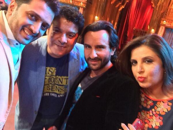 ![]() ^ فرح خان نزلت هاذي الصوره على التويتر وتقول انها بعد تصوير هابي نيو يير التقطت سيلفي مع ابطال Humshakals ![]()