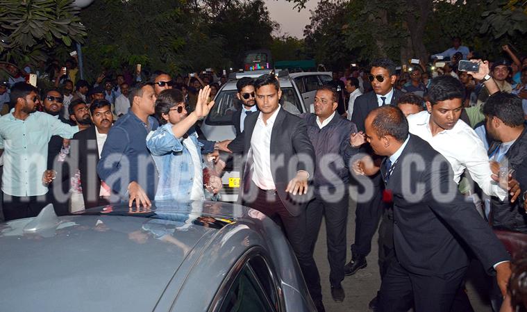 شاروخ خان امس في أحمد أباد خلال الترويج لفلم Raees ![]() ![]()