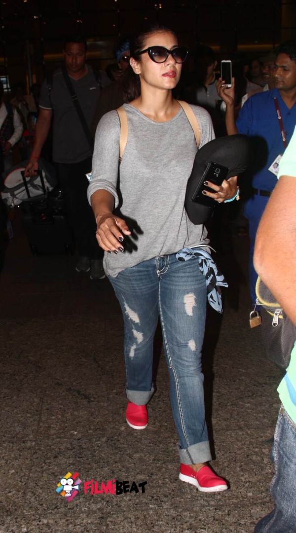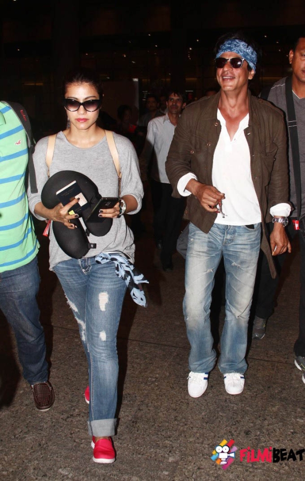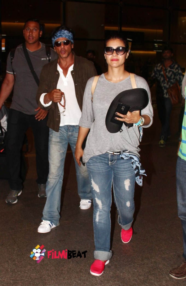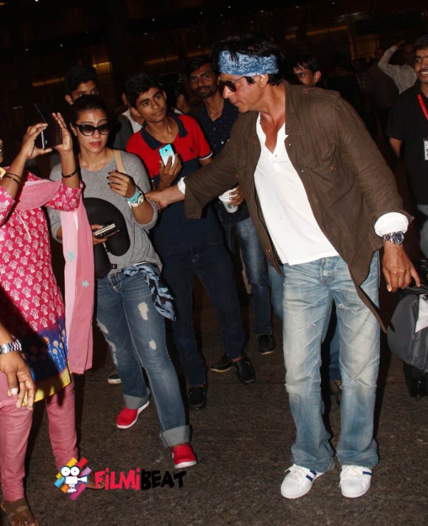 new new new شاروخ خان و كاجول لحظة وصولهم مطار مومباي بعد اختتام جدول تصوير Dilwale في بلغاريا