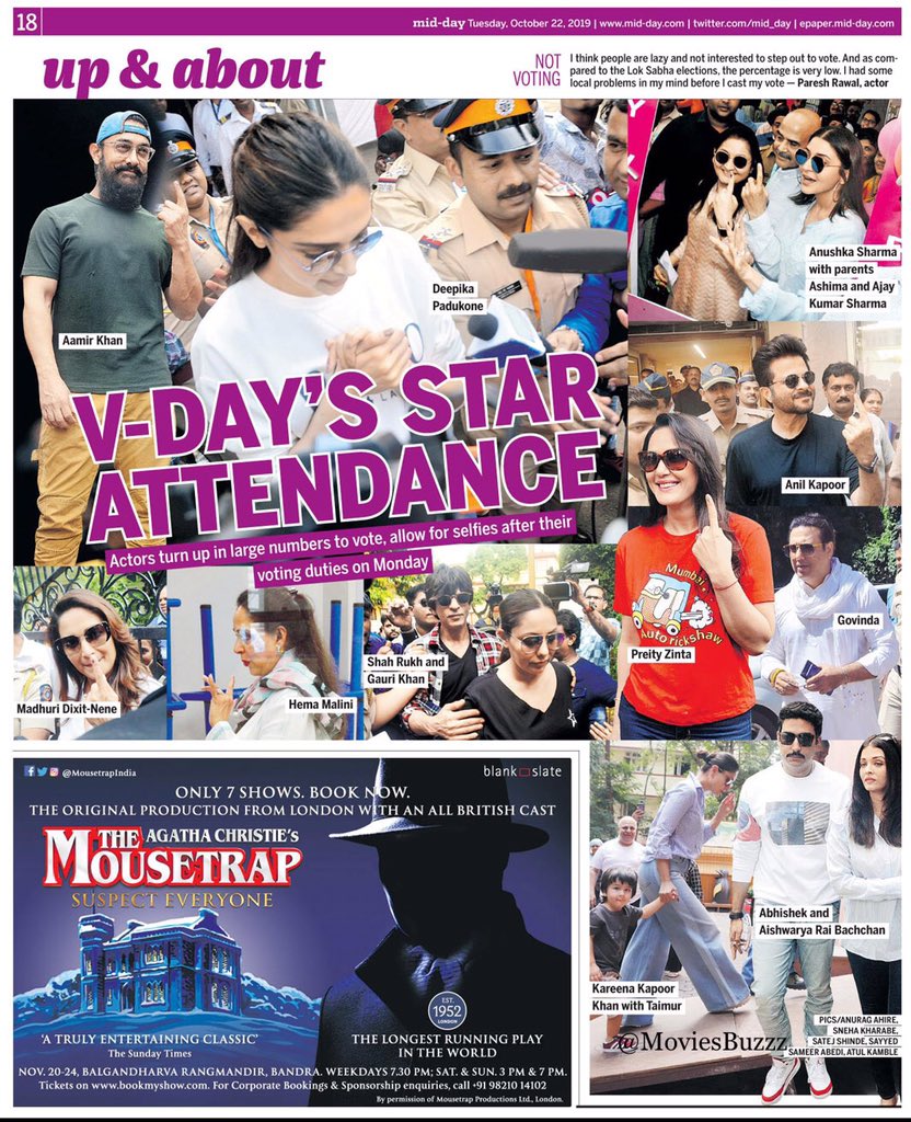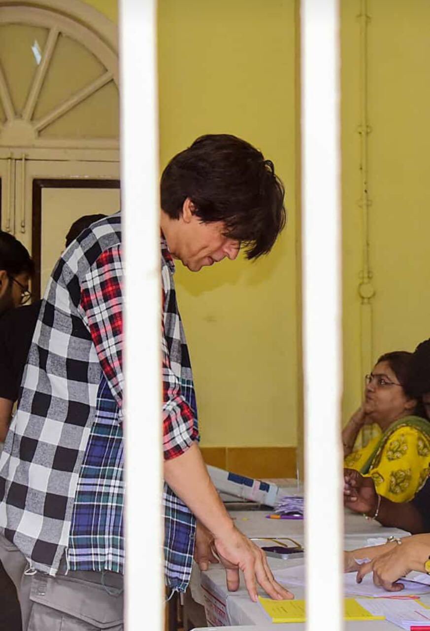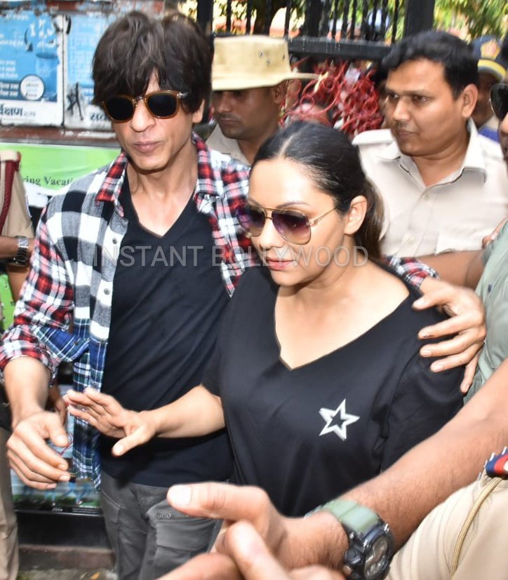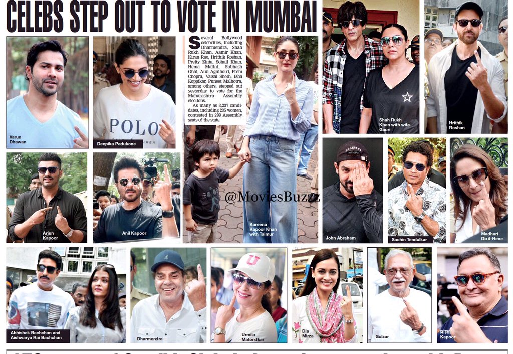 الصحف * شاروخ خان و جوري خان امس خلال الادلاء باصواتهم في انتخابات جمعية ماهاراشترا *