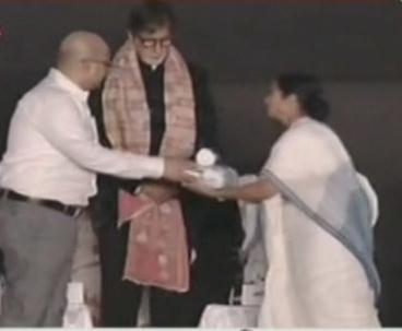 شاروخ خان و اميتاب باتشن الان لحظة تكريمهم في افتتاحية مهرجان كولكاتا السينمائي في دورته الـ 20 ![]() ![]() ![]()