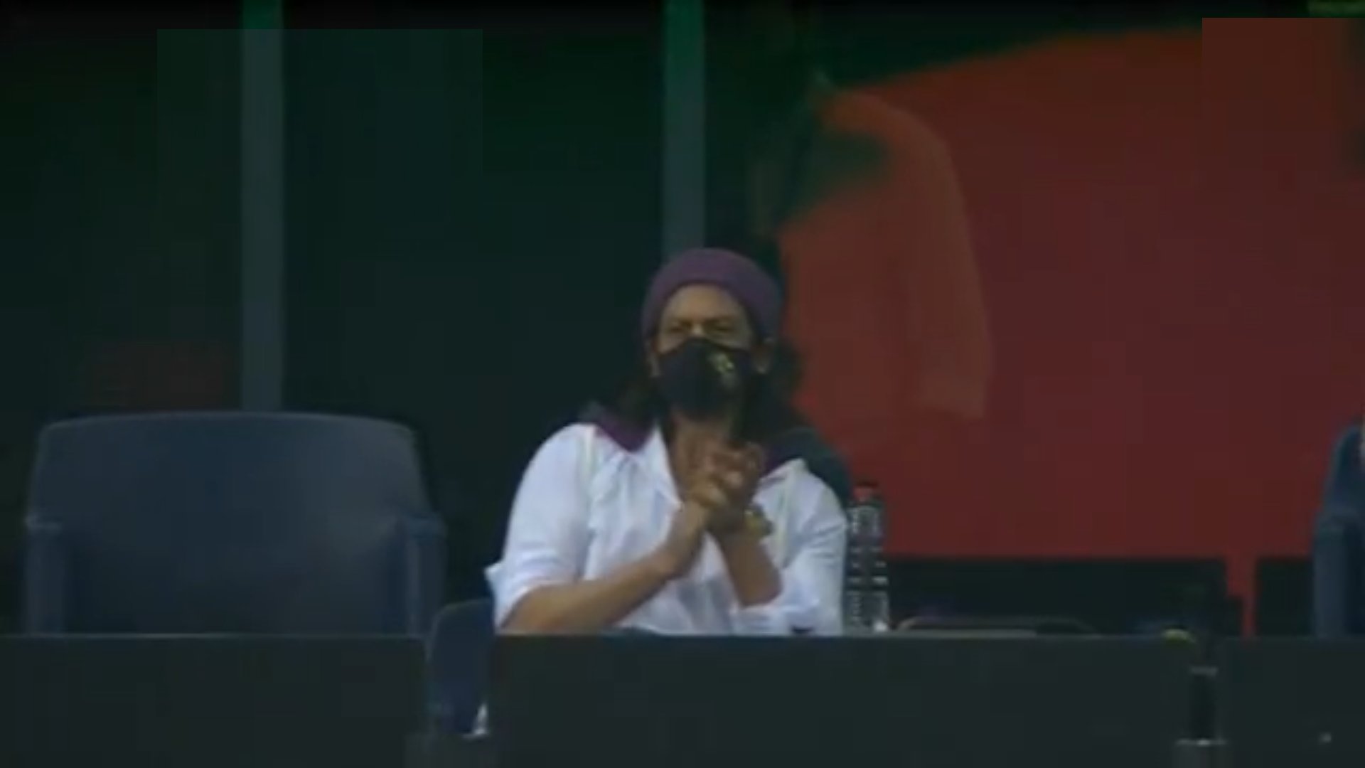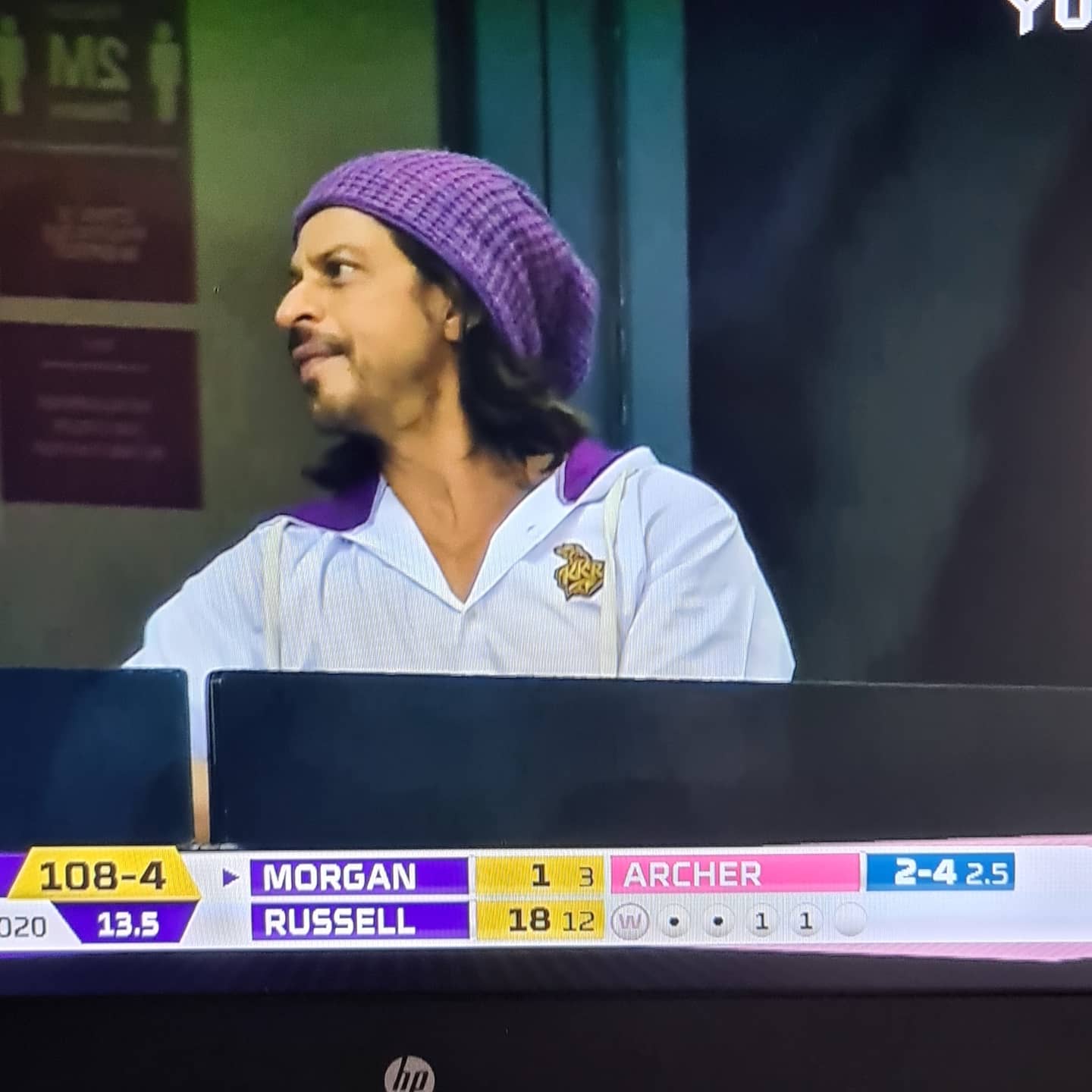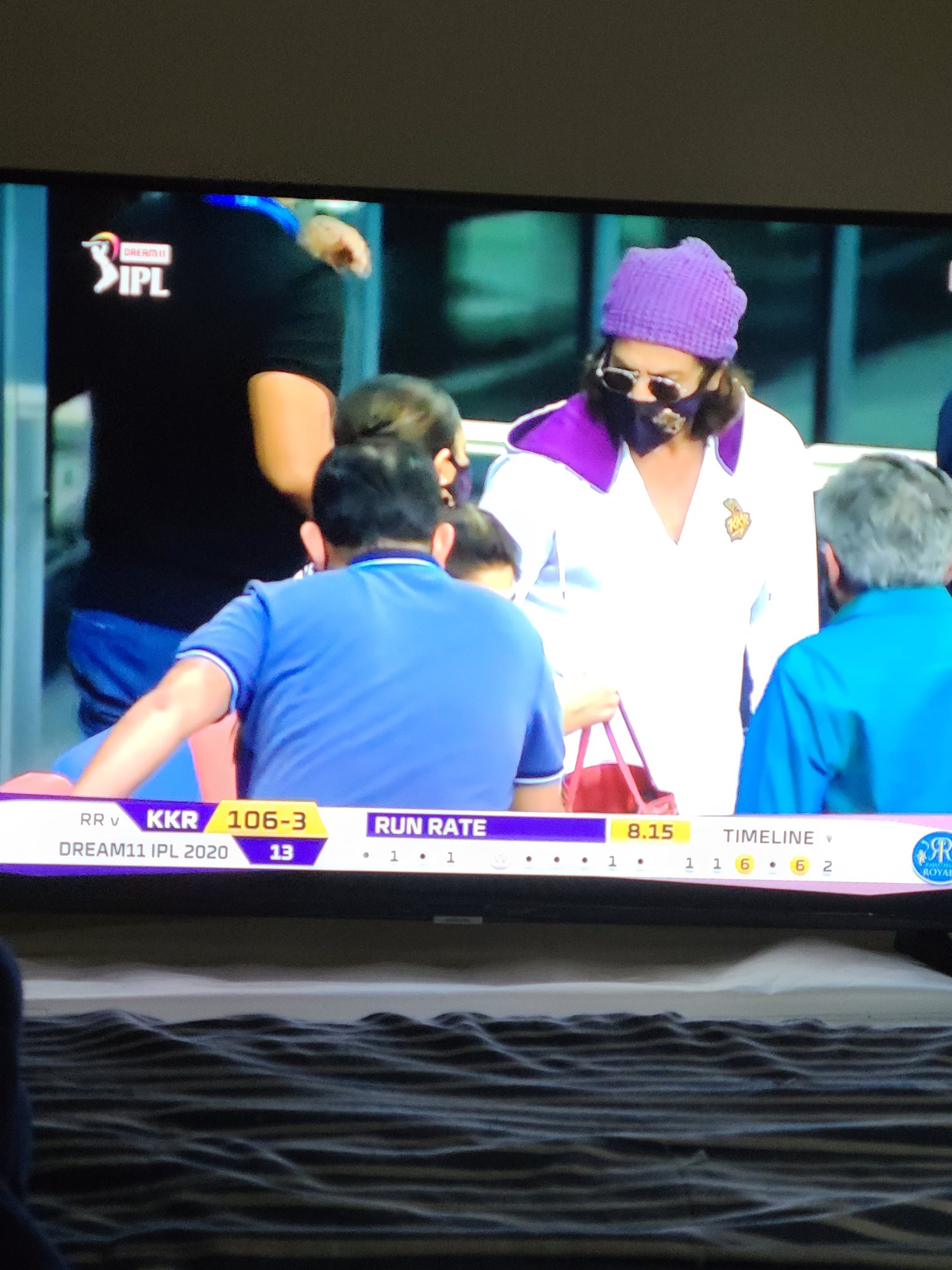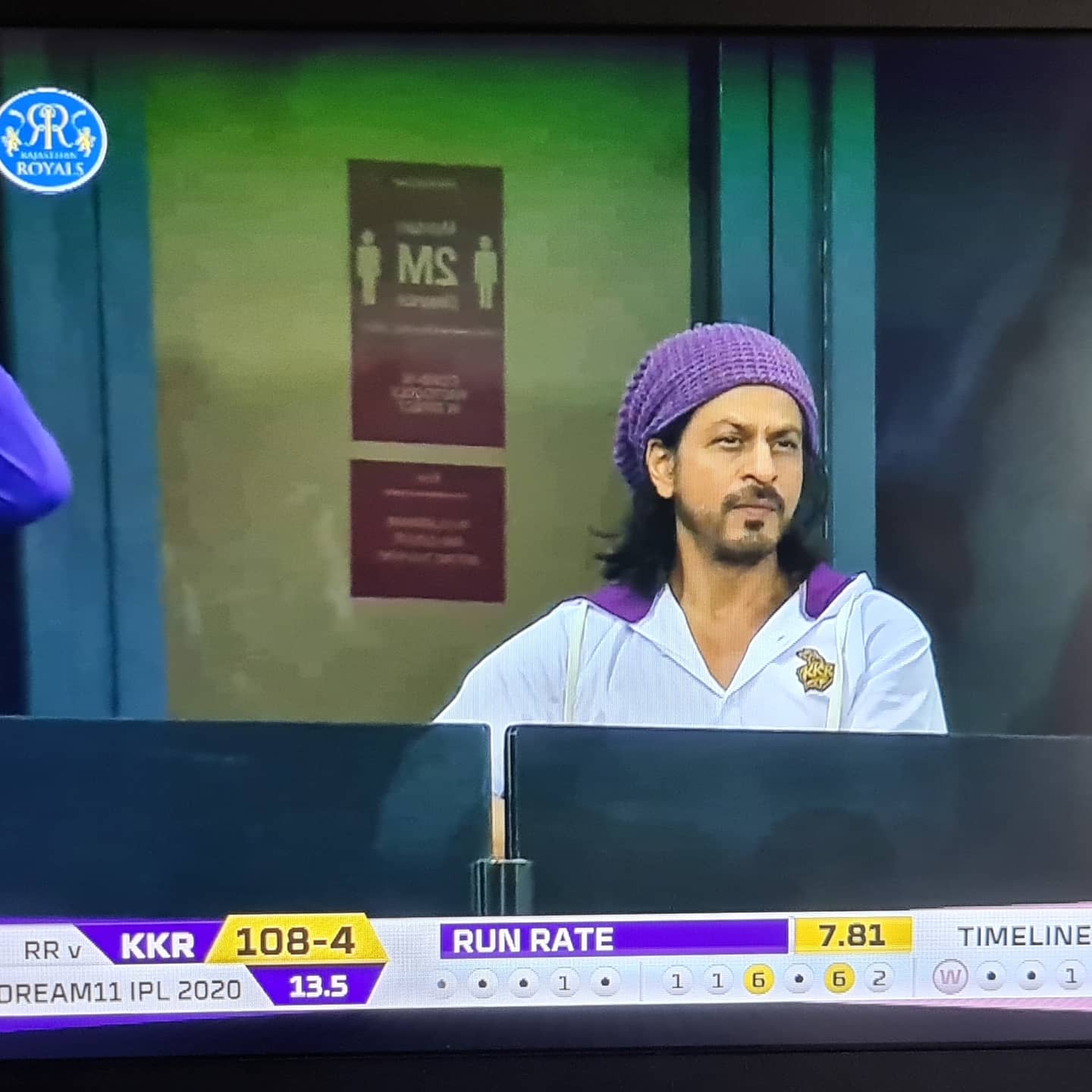 شاروخ خان في مباراة KKR Vs RR في دبي * 30 سبتمبر 2020 * https://twitter.com/KKRiders/status/...186625/photo/1 + https://twitter.com/KKRiders/status/1311546494185467904